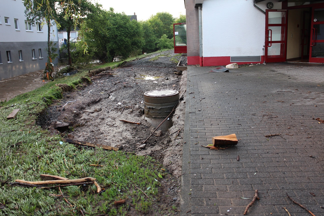 Die Wassermassen hatten den RückWeg, an der Halle, und den Spielplatz, längst schon überschwemmt.
