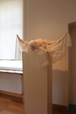 Installation, Bullenschädel, Käsleinen,Garn von Birgit Sagel.