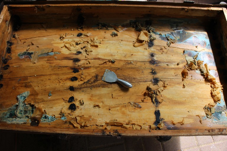 Endlich alles abgeschliffen. Mit Leinenstoff neu bespannt.